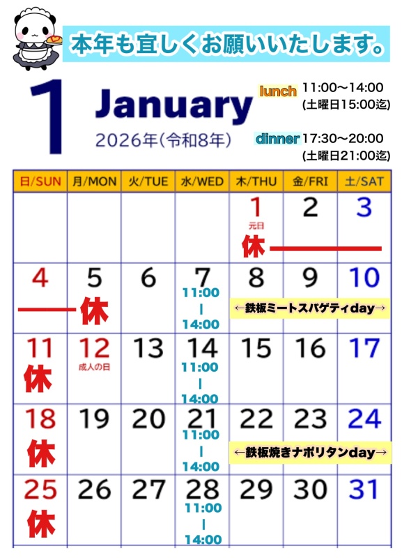 2026年もより一層美味しい料理をお届けできるよう精進してまいります。皆様、どうぞ良いお年をお迎えください。