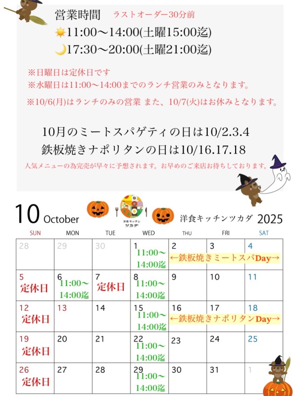 10月営業案内